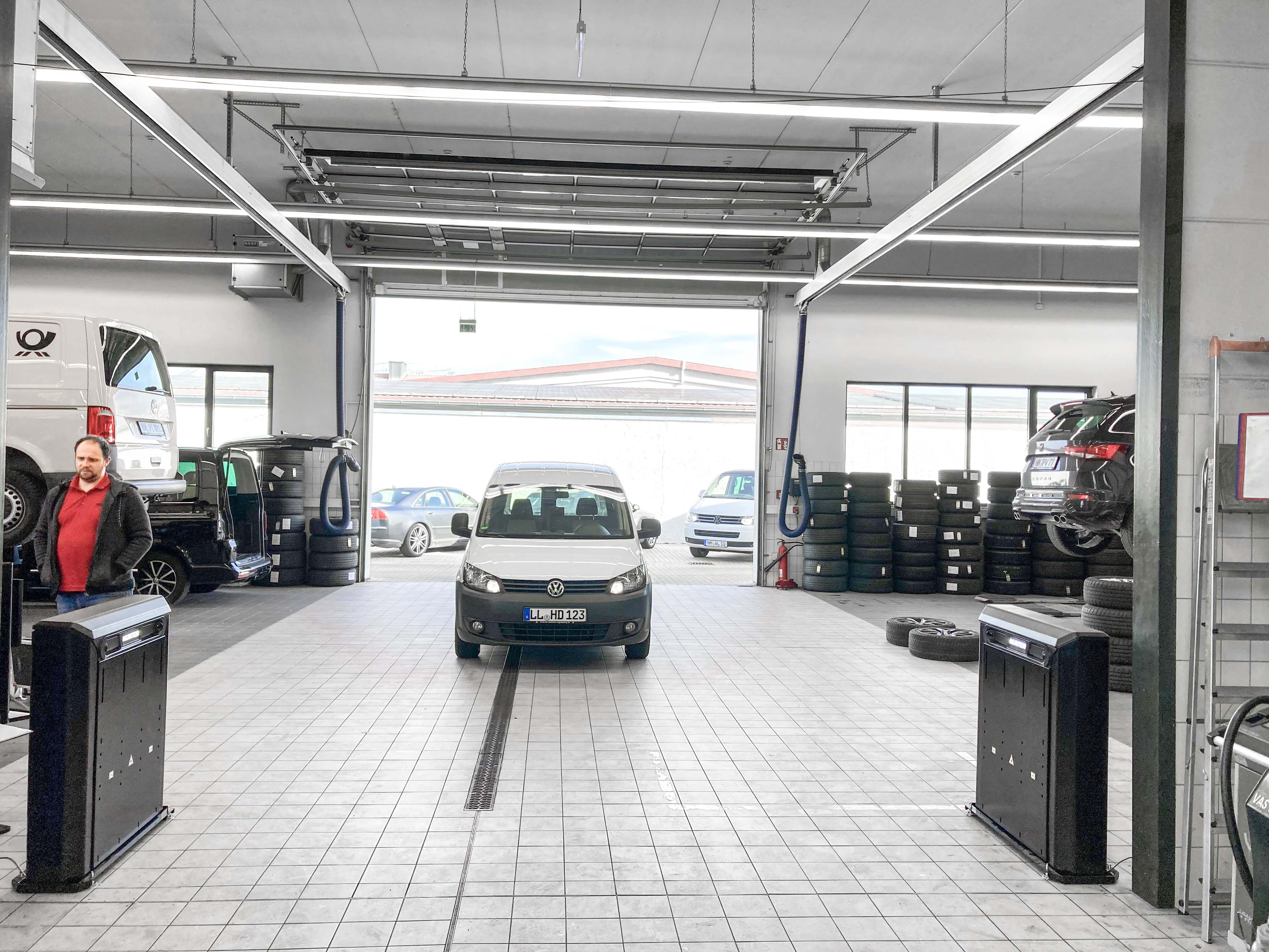 Das Quick Check Drive®-System der Hunter Engineering Company bietet mit der integrierten preisgekrönten WinAlign®-Software von Hunter autonome Achsvermessungsprüfungen. Mit 32 Lasern und 8 Kameras scannt das vollautomatisierte System die Räder eines Fahrzeugs während der Durchfahrt, ohne dass es anhalten muss.