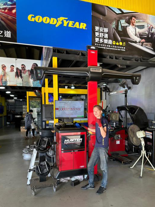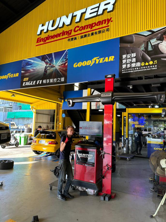 Goodyear Lee Tire Shop in Zhubei City, Taiwan enhanced their alignment service by cutting time, improving professionalism and gaining technician trust with Hunter HawkEye Elite®.