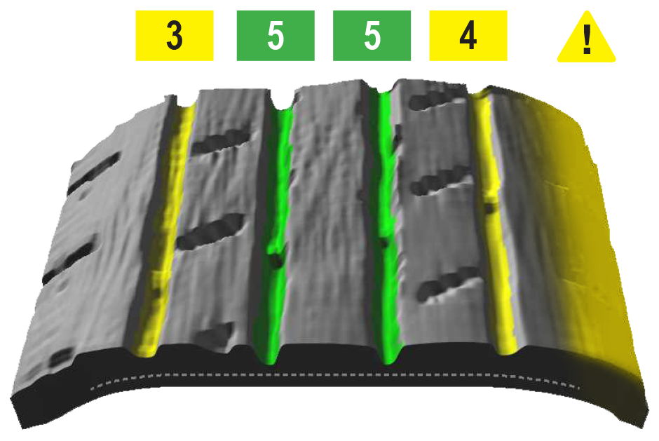 - La plupart de l’usure des bords se produit sur le bord intérieur du pneu et est difficile à détecter par les méthodes d’inspection visuelle