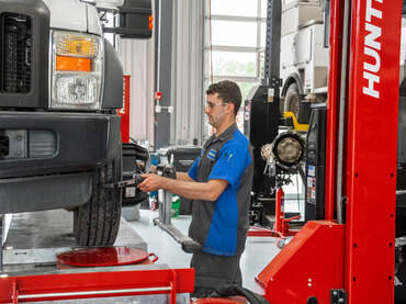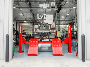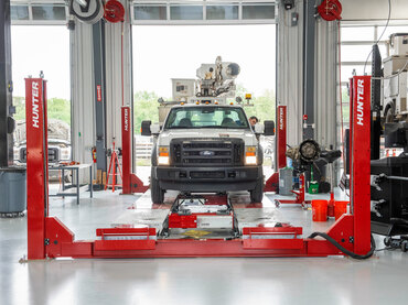 Le pont élévateur à quatre poteaux pour véhicules lourds de Hunter offre une capacité de levage de 15 875 kg et une capacité d’empattement de 7°620 mm pour l’alignement des véhicules. Les rampes galvanisées offrent à votre investissement la meilleure protection contre la corrosion.