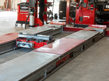 Les quatre poteaux lourds de Hunter sont équipés de poches de plateau pivotant et de plateaux coulissants pour faciliter l’entretien des véhicules standard.