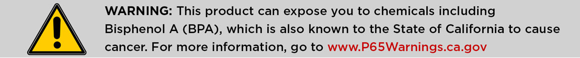 WARNING: This product can expose you to chemicals including Bisphenol A (BPA), which is known to the State of California to cause cancer. For more information, go to www.P65Warnings.ca.gov